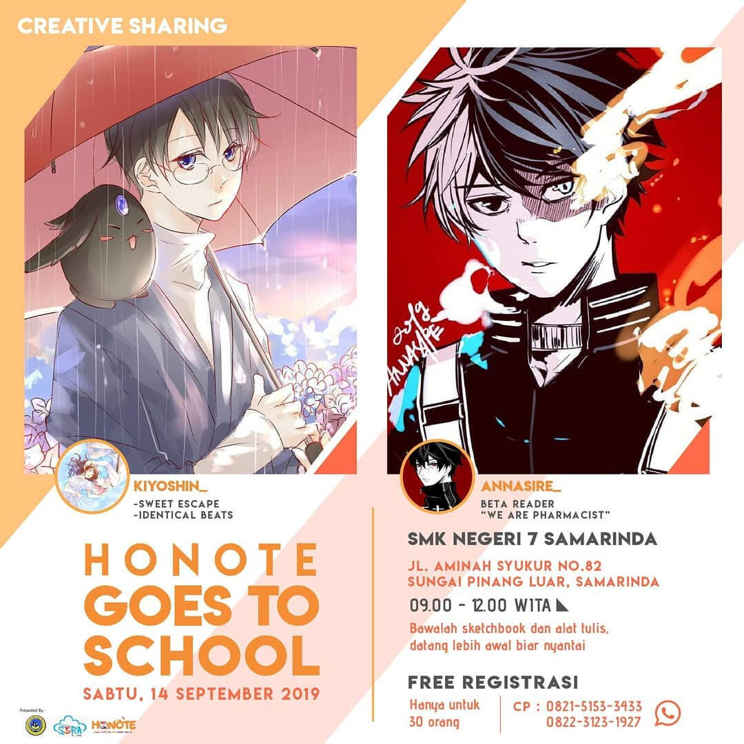 Honote was formed on August 18, 2018. Honote stands for the words Hope, Noise, and Egalite, and has the slogan 'Learn Together and Share with Us'. The main purpose of the formation of this community is to participate in developing the creative industry in the East Borneo region.The reason for the formation of this circle/community is because there is still a lack of interest in the creativity of the community in the field of creative industries (art and illustration) in Samarinda.